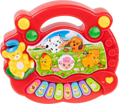 | Interaktīvās klavieres bērniem. Atkarībā no izvēlētā režīma klavieres atskaņo diapazonu, melodijas vai dzīvnieku skaņas.