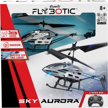 | Vēl viens 3 kanālu helikopters pievienojas Flybotic saimei. Sky Aurora ir aprīkots ar žilbinošu LED aizmugures gaismu, kas to padara unikālu helikopteru klāstā. Pateicoties arī metāliskās krāsas korpusa apdarei, Sky Aurora ir kļuvis par stilīgāko helikopteru, kāds mums jebkad ir bijis. | ||||||||||||||||||||