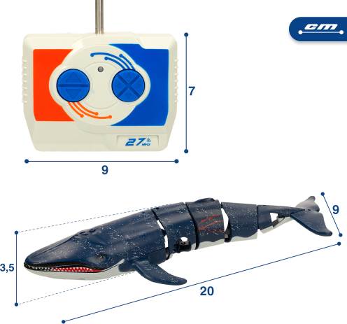 Izklaidējieties, braucot ar RC Racing Boat vali vannā vai baseinā! Ietver zemūdens radiovadību ar 27 MHz frekvenci, lai to pārvietotu 6 virzienos. Valis darbojas, saskaroties ar ūdeni, un izdzen ūdens strūklu, atdarinot īsta vaļa ikonisko sitienu. Pateicoties trim iebūvētajiem propelleriem, tas spēj sasniegt 5-6 metru attālumu. Reālistiska rotaļlieta, ar kuru var spēlēties līdz pat 7-8 minūtēm pēc kārtas. Tas uzlabo roku veiklību, veicina orientēšanos telpā un attīsta mazo iztēli. Parādiet savas prasmes, vadot šo ātrlaivu un iedomājieties, ka esat profesionāls sacīkšu braucējs! -Vecums un vērtības: rotaļlieta ieteicama bērniem no 4 gadu vecuma, kas veicina orientēšanos telpā, attīsta iztēli un uzlabo roku veiklību - Iegremdējieties ar šo neticamo vaļu sacīkšu laivu! Tas spēj sasniegt 5 līdz 6 metru attālumu! -Dizains: valis ar izmēriem 20x9x3,5 cm, aprīkots ar trim dzenskrūvēm, lai kustētos veikli un dinamiski -Funkcijas: ietver ūdenī iegremdējamu tālvadības pulti ar frekvenci 27 MHz, kas ļauj virzīties uz priekšu/atpakaļ un virzīties uz priekšu/atpakaļ, pagriežot pa kreisi vai pa labi. Spēles ilgums ir 7-8 minūtes. Lai nodrošinātu lielāku drošību, valis darbosies tikai tad, ja tas nonāks saskarē ar ūdeni - Baterijas un akumulators: valis darbojas ar uzlādējamu akumulatoru (iekļauts lādētājs) un tālvadības pulti ar 3 AA baterijām (iekļauts) |