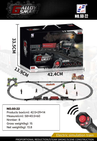 Komplekts retro metāla dzelzceļš ar tālvadības pulti ar dūmu funkciju un braukšanas skaņām, kā arī komplektā iekļautajiem celiņiem ir piedāvājums bērniem no 5 gadu vecuma. Rindu darbina 3,7 V tipa akumulators (iekļauts komplektā), 2 x AA 1,5 V bateriju tālvadības pults (nav iekļauta komplektā). Rindas maršruts ir veidots kā Elipse ar izmēriem apm. 181 cm x 78 cm. braukšanas laikā lokomotīve izdala dūmus no skursteņa (iepriekš to papildinot ar ūdeni - komplektā iekļauto ūdens pipeti), papildus iedegas priekšpusē uzstādītā gaisma. Celiņiem ir vienkāršs Savienojuma veids, kas padara tos drošus un izturīgus lietošanā. Izmantojot tālvadības pulti, mēs varam kontrolēt rindas kustību uz priekšu, atpakaļ, kustības ātrumu, skaņas signālus un tvaika funkcijas. |