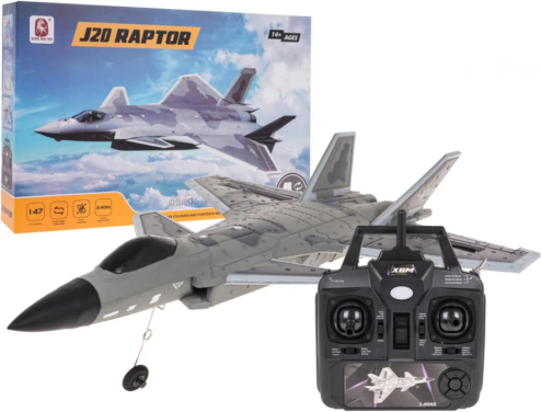 Komplektācijā ietilpst: Raptor J-20 lidmašīna, Tālvadības pults, Skrūvgriezis, 2 rezerves dzenskrūves, 3.7V 800mAh akumulators, USB uzlādes kabelis, Instrukcija.