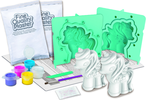| Veidojiet, krāsojiet un izrotājiet savus 3D mirdzošos vienradžus. Esiet radoši un izveidojiet savus fantāzijas vienradžus, ko izrādīt ar lepnumu. Izveidojiet vienradžus, izmantojot ģipsi un veidni, izrotājiet tos ar komplektā iekļautajām krāsām un spīdumiem. Stundām ilga radoša izklaide bērniem no 5 gadu vecuma |
