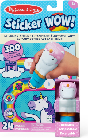 | Melissa & Doug Sticker WOW! uzlīmju spiedējs ir pavisam jauns veids, kā rotaļāties ar uzlīmēm! Ļaujiet burvīgajam, kolekcionējamajam vienradzim Kēksiņam apzīmogot visas 24 lappuses, kas veltītas jautrām fantāzijas tēmām, skaitīšanas, saskaņošanas, meklēšanas un atrašanas darbībām. Atkārtoti uzpildāmajā uzlīmju spiedējā jau ir ielādētas 300 dažādas uzlīmes — ar 100 unikāliem dizainiem katrā iepakojumā, turklāt katra uzlīme ir kā pārsteigums! Tematiskie uzpildes iepakojumi tiek pārdoti atsevišķi un tie sader ar jebkuru Sticker WOW! uzlīmju spiedēju. Uzlīmes nav atkārtoti lietojamas, taču vajadzības gadījumā tās var viegli noņemt. Aizpildiet aktivitāšu lapas un izmantojiet radošiem mākslas projektiem, piemēram, veidojot grāmatzīmes, plakātus, kartītes un daudz ko citu. Viegli noņemamās uzlīmes un ērtais formāts līdzņemšanai ar iebūvētu vietu uzglabāšanai uzlīmju spiedējā padara Sticker WOW! (patents pieteikts) par lielisku ceļojumu nodarbi, kas nerada nekārtību. Sticker WOW! uzlīmju spiedējs veicina smalko motoriku, rosina radošas rotaļas, sniedz gandarījumu un ļauj jautri pavadīt laiku! | ||||||||||||||||||||