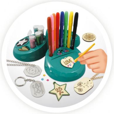 Droša darbnīca koka un metāla gravēšanai. Izveidojiet un personalizējiet 5 magnētus, 5 atslēgu piekariņus, 10 kaklarotas un 1 grāmatzīmi! Malkas dedzināšanas instruments ir aprīkots ar aizsargu, lai novērstu apdegumus, termostatu temperatūras regulēšanai un ON/OFF taustiņu. Pieaugušie var izmantot pincetes, lai droši piestiprinātu vienu no 6 uzgaļiem dažādu dizainu iegravēšanai! Metāla gravieri var izmantot, lai uz metāla plāksnēm uzzīmētu dizainus, kurus pēc tam var pārvērst par rotaslietām vai atslēgu piekariņiem! Malkas dedzināšanas instruments darbojas ar maiņstrāvu, un metāla gravētājam ir nepieciešamas 2 LR06 baterijas, kas nav iekļautas komplektā. Kastes izmēri 28,00 x 09,50 x 26,00 cm No 8 gadu vecuma Nepieciešamas 2 baterijas LR06, kas nav iekļautas Iekļauts : iekļauti daudzi aksesuāri veidošanai un dekorēšanai: filca uzgaļi, spīdumi, dimanta, līme, pincetes, metāla un koka formas, ķēdes, gredzeni, aizdares utt. Brīdinājums: nav piemērots bērniem līdz 8 gadu vecumam. Darbība jāveic pieaugušo uzraudzībā. BRĪDINĀJUMS! Nav piemērots bērniem, kas jaunāki par 36 mēnešiem, jo ir sīkas detaļas, kuras var norīt. Aizrīšanās risks. SAGLABĀJIET IEPAKOJUMU NĀKĀMĀM ATSAUCEI. Krāsas un saturs var nedaudz atšķirties. Nepieciešamas 2 LR06-AA baterijas, kas nav iekļautas komplektācijā. Baterijas jāmaina pieaugušajam. Elektrisko izstrādājumu atkritumi ir jāatbrīvojas drošā veidā. BRĪDINĀJUMS! Jālieto tiešā pieaugušā uzraudzībā. Funkcionālu asu punktu un malu klātbūtne. Šo ierīci drīkst lietot bērni no 8 gadu vecuma un personas ar ierobežotām fiziskām, maņu vai garīgām spējām vai pieredzes un zināšanu trūkumu, ja viņiem ir sniegta uzraudzība vai norādījumi par ierīces lietošanu drošā veidā un izprast saistītos apdraudējumus. |