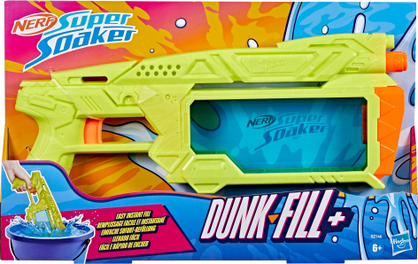 | Nerf Super Soaker Dunk-Fill+ ūdens blasteris padara ūdens spēles īpaši vienkāršas! Iemērc tvertni ūdenī, un tā momentā piepildās! Nav jāgaida, nav pogu un nav vāciņu – tikai iemērc un spēlē. Blastera tilpums ir līdz 358 ml ūdens. Piespied sprūdu un lai ūdens jautrība sākas! Caurspīdīgā tvertne ļauj redzēt, kad laiks atkal to piepildīt. Nerf Super Soaker ūdens blasteris ir ideāls āra spēlēm un ir lieliska dāvana visiem, kam patīk ķert saules un ūdens prieku! | ||||||||||||||||||||