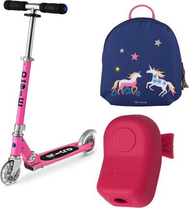 Micro Hulajnoga Sprite Pink LED + Micro Plecak w jednorożce XS AC4662 + Micro Światełko jednorożce AC5466