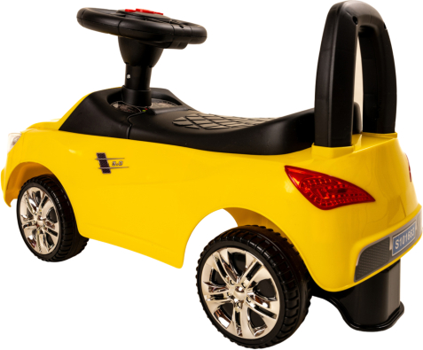 Izcili izturīgs un funkcionāls rotaļu ratiņš, kas apvieno klasisku dizainu ar modernām tehnoloģijām. Transportlīdzeklim ir aktivizēti priekšējie lukturi, kurus bērni var aktivizēt spēlējoties. Interaktīvās pogas uz stūres iedarbina akustiskās rotaļlietas, kas piešķir spēlēšanās pieredzei reālismu un daudzveidību. Šī unikālā rotaļlieta ir uzlabojusi standarta funkcijas, neapšaubāmi aizraujot jaunos prātus, vienlaikus nodrošinot drošu spēlēšanos. Plastmasas skrejmašīna ar skaņas un gaismas efektiem bērniem no 18-72 mēnešiem. Paredzētas 3 AA (3x1,5V) bat. BRĪDINĀJUMI! Šai rotaļlietai nav bremzes! Izmantot tikai pastāvīgā pieaugušo uzraudzībā! Neizmantot nedrošās vietās (piem: uz ielas, kur notiek satiksme, tuvu krītošiem priekšmetiem, tuvu ūdenstilpnēm, uz slīpām nogāzēm, kāpnēm)! Montāžu veikt tikai pieaugušajiem. Pirms rotaļlietu dodiet bērniem izņemiet to no iepakojuma, un ja uz tā ir noderīga informācija, noglabājiet to bērnam nepieejamā vietā! Iepakojums var saturēt sīkas vai atraujamas detaļas, kuru iekļūšana elpošanas ceļos var radīt nosmakšanas risku. Ražots Ķīnā. Importētājs: "SabiToys" sp. zo.o., ul. Jozefa Wajzera 27/3, 41-808 Zabrze, Polija.