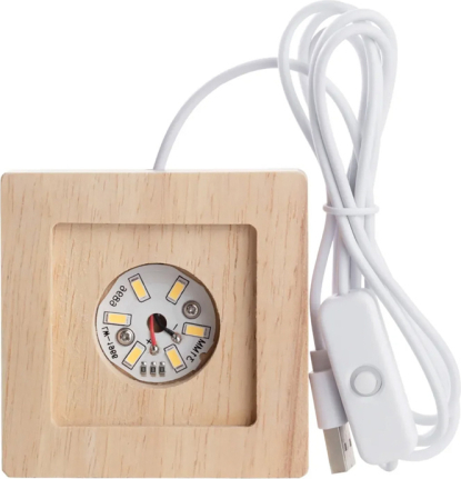 LED stand designed for the rectangular xTool K9 cubeWant to showcase your engraved xTool K9 cube in style? Grab the matching LED stand! The wooden design looks great, and the built-in warm-toned backlight evenly illuminates the glass from below, making the engraving inside clearer and more visible. What’s more, its compact dimensions (8 × 5 cm) and USB power supply make this accessory convenient for everyday use and ideal as a decorative or display piece.