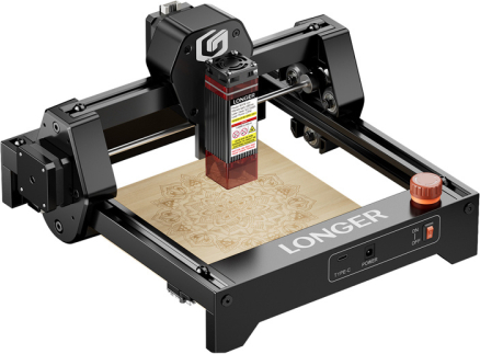 Longer Ray5 mini laser engraver (5.5 W)Do you personalize small items, decorations, or DIY prototypes at home? The Longer Ray5 mini engraver with a 5.5 W diode laser allows you to start working without reorganizing your workstation or workshop. The device is factory assembled, so you can start your first project right out of the box instead of spending hours on assembly and calibration. The 130 × 140 mm working area provides space for key chains, plaques, or decorative elements, and the speed of up to 12,000 mm/min means that even larger designs can be created efficiently. The 0.04 mm laser spot and 450 nm wavelength allow you to reproduce details that often disappear or blend together in this class of devices. This allows you to work precisely even in small spaces.