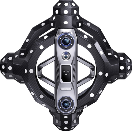 The Revopoint Trackit optical 3D scanner eliminates complicated setup by using two gimbals with automatic calibration (Dual-Axis Gimbal System). The Tracker and scanner automatically adjust their position relative to each other, ensuring consistent geometry of the measurement system. The calibration process can be started directly in the software - the system automatically recognizes calibration arrays and synchronizes camera parameters.