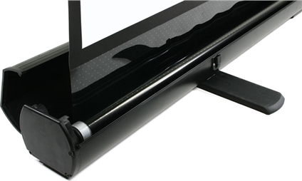 * MaxWhite 1.1 Gain material with standard black backing is durable and easy to clean* Easy to transport and set up for traveling* Features a simple telescoping support mechanism for variable height settings * Solid rotating floor support feet provides added stability* Wide projection viewing angle with 160° diffusion uniformity* Built-in carrying handle for enhanced mobility* Rugged aluminum casing protects the screen * 3/4" black top/side masking with adjustable bottom rise masking