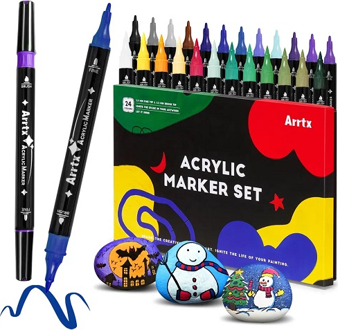| High-quality ARRTX acrylic paint marker pens set of vibrant colors is designed for painting on different surfaces, such as paper, cardboard, canvas, fabric, metal, ceramics, plastic, wood, rock and more. The set includes 24 markers. The markers are safe, odourless, acid-free and water-based. This set is a good gift for children, students, artists, everyone who loves DIY craft projects. You will no longer be bound by the material. Features: Smooth inkling and excellent coverage on different surfaces. Dual tip design meets different painting needs: the 3.2 mm brush tip and the 1.9 mm extra fine tip for details. Blends perfectly, so you can get beautiful color effects. Dries quickly and leaves no stains during use. UV-resistant and long-lasting. The markers are packaged in a unique box, neatly arranged for easy carrying. Notes: Markers are water-based, so colors may vary slightly depending on the type of surface used. For best results, it is recommended to keep the markers in a horizontal position, and close the caps immediately after use to prevent evaporation. Attention! Not suitable for children under 3 years of age, with adult supervision only. Do not expose the marker marker to direct sunlight. Set includes: Markers pens x 24. Box x1. ![]() ![]() ![]() ![]() |