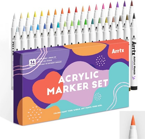 | High-quality ARRTX waterproof acrylic paint marker pens set is designed for painting on different surfaces, such as paper, cardboard, glass, canvas, fabric, ceramics, plastic, wood, rock and more. The set includes 36 markers. The markers are safe, odourless, acid-free and water-based. This set is a good gift for everyone, suitable for Easter eggs, Christmas ornament, Halloween pumpkin painting, calligraphy, scrapbook, brush lettering, Christmas card, birthday gifts, greeting card, or any DIY crafts projects and more. Features: Smooth inkling and excellent coverage on different surfaces. 1-5 mm premium brush tip. Bright vibrant colors. Easy to apply - no need to shake or press the tip. Water-resistant when dried up. Dries quickly and leaves no stains during use. The markers are packaged in a comfortable box, neatly arranged for easy carrying. Please note: When you open the package for the first time, the order of placing the acrylic markers is the same as the order of the color card stickers, just stick them in order. Notes: Markers are water-based, so colors may vary slightly depending on the type of surface used. For best results, it is recommended to keep the markers in a horizontal position and close the caps immediately after use to prevent evaporation. Attention! Not suitable for children under 3 years of age, with adult supervision only. Do not expose the marker marker to direct sunlight. Set includes: Markers pens x 36. Box x1. ![]() ![]() |