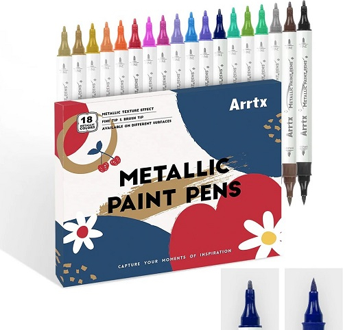 | High-quality ARRTX dual tip acrylic paint marker pens set is designed for painting on different surfaces, such as paper, cardboard, glass, canvas, fabric, ceramics, plastic, wood, rock and more. The set includes 18 metallic colors paint pens. The markers are safe, odourless, acid-free and water-based. This set is a good gift for everyone who loves DIY craft projects. Perfect set for holiday season and gift decoration. Features: Smooth inkling and excellent coverage on different surfaces. Dual tip: 3.2 mm brush tip and 1.9mm fine tip. Bright and glossy colors. Easy to apply - no need to shake or press the tip. Water-resistant when dried up. Dries quickly and leaves no stains during use. The markers are packaged in a box, neatly arranged for easy carrying. Notes: Markers are water-based, so colors may vary slightly depending on the type of surface used. For best results, it is recommended to keep the markers in a horizontal position and close the caps immediately after use to prevent evaporation. Attention! Not suitable for children under 3 years of age, with adult supervision only. Do not expose the marker marker to direct sunlight. Set includes: Markers pens x 18. Box x1. ![]() ![]() ![]() |