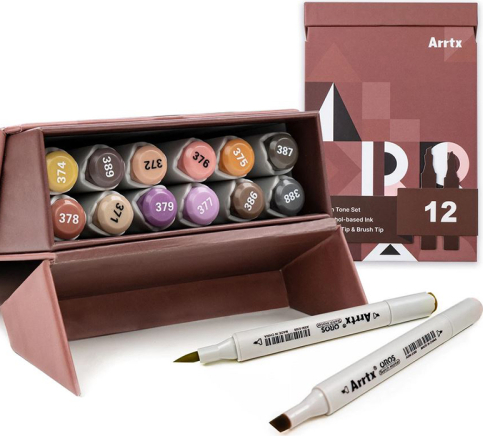 Double-sided Marker Pens ARRTX Oros, 12 Colours, earth tone shade
