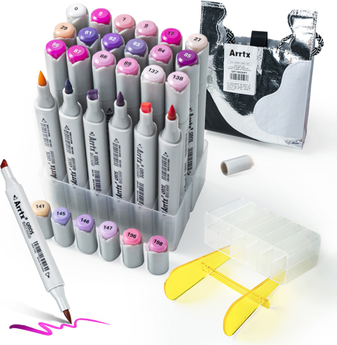 Double-sided Marker Pens ARRTX Oros, 24 Colours, purple tone shade