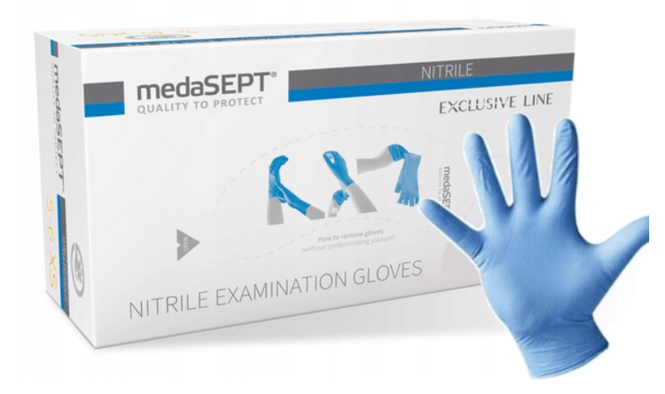Bezpulvera nitrila cimdi Krāsa - zila Forma - universāla, cimdi der gan labajai, gan kreisajai rokai Aproce - vienmērīgi norullēta mala Ārējā virsma - tekstūra uz pirkstu galiem Iekšējā virsma - hlorēts AQL - 1,0 Iepakojumā: 100 gab.. Pielietojums Diagnostikas cimdi veido mehānisku barjeru starp medicīnas personālu un pacientu. Tie aizsargā pret mikrobu migrāciju un samazina infekcijas risku, tostarp HIV, B un C hepatītu un citus. Cimdi ir paredzēti medicīniskām pārbaudēm un citām diagnostikas procedūrām. Cimdi ir izturīgi pret baktērijām un sēnītēm, vīrusiem, ķīmisko izturību un citostatiskiem līdzekļiem. Produkta īpašības - medicīniskā ierīce - I klase saskaņā ar Regulu (ES) 2017/745 - individuālo aizsardzības līdzekļu I klase, III kategorija, B tips - saskaņā ar Regulu (ES) 2016/425 - standarti: EN 455 1-4, EN ISO 15223 -1, EN 1041, EN ISO 374-1, EN ISO 374-2, EN 16523, EN ISO 374-4, EN ISO 374-5, EN ISO 21420 - piemērots saskarei ar pārtiku saskaņā ar Regulas ( EK) 10/2011, Regula (EK) 1935/2004. - sintētisks, bez pūdera, izgatavots no nitriliem - cilvēkiem ar alerģisku reakciju pret lateksu - pielāgojas rokai - kartons pirkstu galos - universāla forma - der gan kreisajai, gan labai rokai.