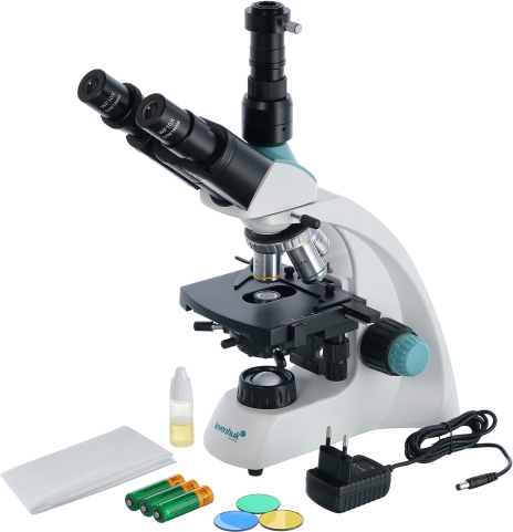Palielinājums: 40–1000x Apakšējais LED apgaismojums novērojumiem caurlaidīgā gaismā Kolektora un spilgtuma regulēšana, barošana ar baterijām vai maiņstrāvas padeve Iekļauta 3,1 MP digitālā kamera Komplektā ietilpst:
