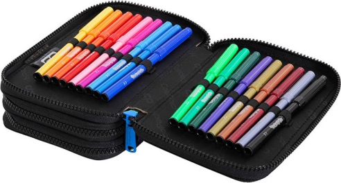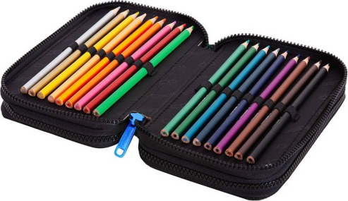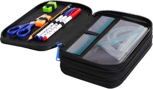 Triple decker pencil case with equipment