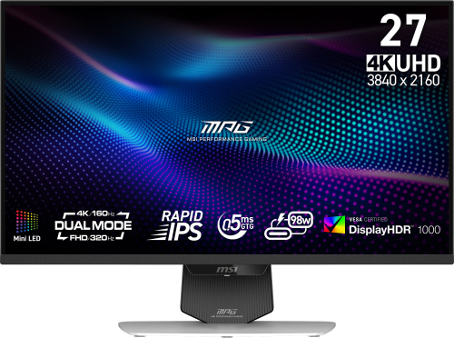 MSI MPG 274URDFWDE E16M QLED (68.6 cm (27 inches), white/black, UltraHD/4K, Rapid-IPS, dual-mode (FHD 320Hz / 4K 160Hz), mini-LED, 160Hz panel)