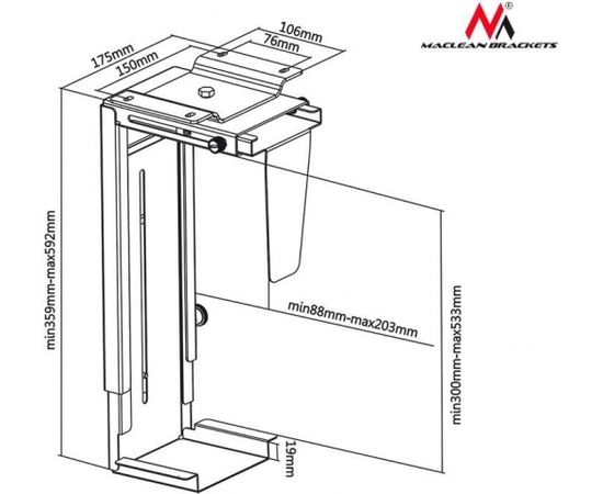 Maclean MC-713 B Adjustable Under-Desk /Wall CPU Mount