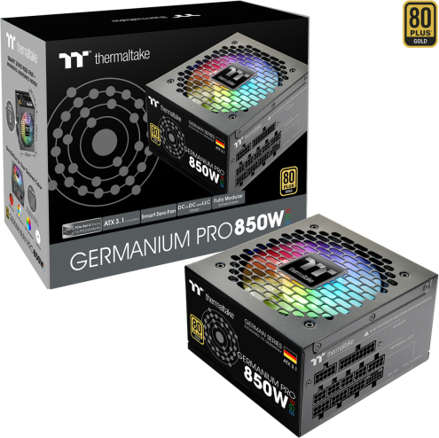 Thermaltake Germanium Pro RGB 850W (black, 1x 12-pin high power GPU, 4x PCIe, cable management, 850 watts)