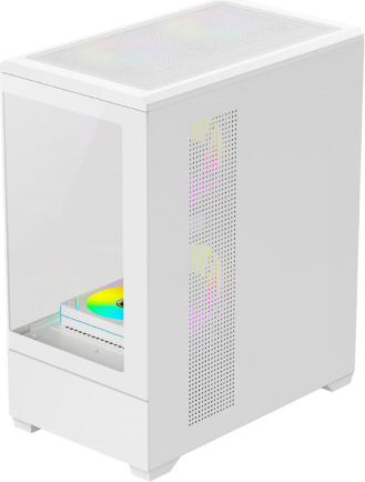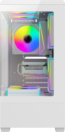 DarkFlash C365 computer case (white) + 5 fansDarkFlash C365 is a functional computer case designed for effective display of components while maintaining a compact size. The column-free design offers a 270° panoramic view, allowing for a full presentation of the interior – for example, components with backlighting. The option to install up to 7 fans allows you to create an efficient cooling system, and compatibility with various motherboards (E-ATX, ATX, M-ATX, ITX), graphics cards up to 330 mm in length, and CPU coolers up to 170 mm in height provides many expansion options. What's more, the set includes not only the case, but also 5 fans.