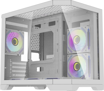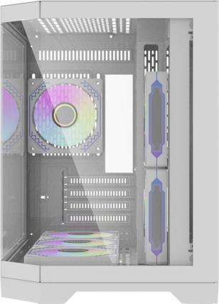 Darflash FT418 computer case + 6 aRGB fans (white)Darkflash FT418 is a compact computer case designed for users who appreciate both aesthetics and functionality. It is equipped with three transparent tempered glass panels and six ARGB fans, so it perfectly combines cooling performance with a modern gaming design. It's also compatible with a wide range of popular components, so you can build a computer perfectly suited to your needs.