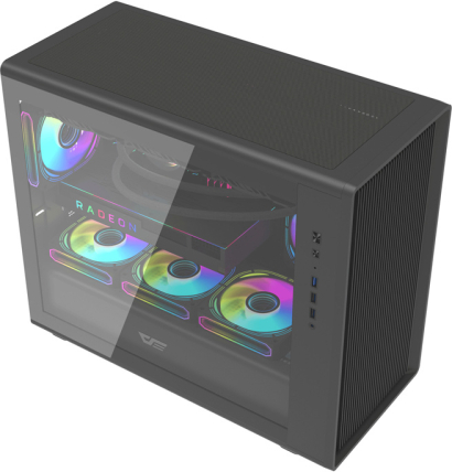 Darkflash DB460M is a reliable computer case designed for all gamers looking for a combination of functionality and aesthetics. It offers a spacious interior for convenient installation of graphics cards up to 420 mm in length, a tempered glass side panel, a full mesh front panel and excellent cooling options (up to 12 fans and a 360 mm radiator can be installed). The chassis looks sleek, and is compatible with M-ATX and ITX motherboards and equipped with USB 3.0 ports for fast data transfer.