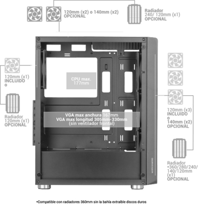 TACENS MARS MC-F 4x120mm ARGB ATX- obudowa
