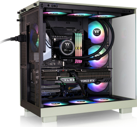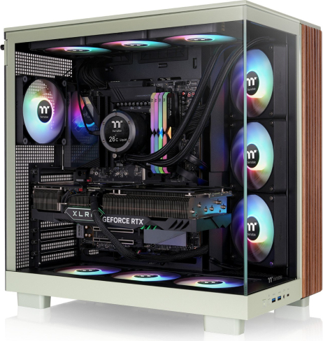 Thermaltake View 380 XL WS ARGB, Tower Case light green/wood, Tempered Glass x 2, Wood texture