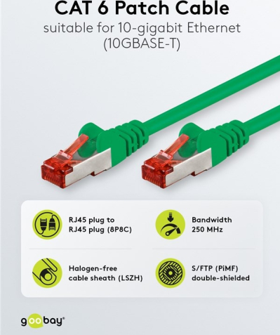 Goobay Patch kabelis;S/FTP;6;savienojums 1:1;vītņots;Cu;LSZH;zaļš;1m