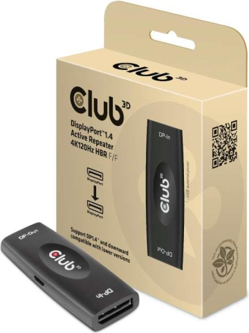 DisplayPort 1.4 Active Repeater 4K120Hz HBR3 F/F. Manufacturer Website: https://www.club-3d.com/en/detail/2500/displayport_1.4_active_repeater_4k120hz_hbr3_f-f/ | ||||||||||||||||||||||||