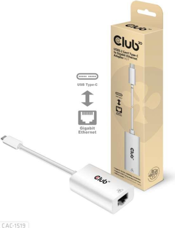 The Club 3D CAC-1519 is an USB3.2 GEN1 Type-C to Gigabit Ethernet Adapter. It enables your new MacBook Pro, ChromeBook or other USB-C supported host PC to get access to a fast Ethernet network by connecting the Gigabit Ethernet port. The Ethernet adapter is compact and highly portable. Powered by the USB C port, the adapter requires no external power and is ideal for use with notebooks and Ultrabooks.