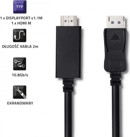 Qoltec 50441 DisplayPort v1.1 male | HDMI male | 4K | 2m