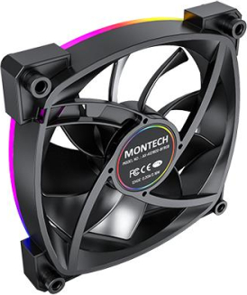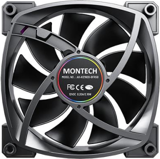 Montech AX120 PWM. Type: Fan module, Fan diameter: 12 cm, Rotational speed (min): 720 RPM, Rotational speed (max): 1760 RPM, Maximum air pressure: 1.8 mmH2O. Width: 120 mm, Depth: 25 mm, Height: 120 mm. Product colour: Black