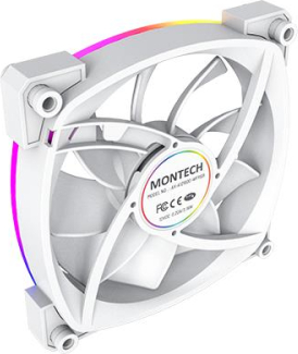 Montech AX120 PWM. Type: Fan module, Fan diameter: 12 cm, Rotational speed (min): 720 RPM, Rotational speed (max): 1760 RPM, Maximum air pressure: 1.8 mmH2O. Width: 120 mm, Depth: 25 mm, Height: 120 mm. Product colour: White