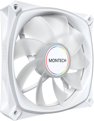 Summary Montech RX120 PRO. Type: Fan, Fan diameter: 12 cm, Rotational speed (min): 600 RPM, Rotational speed (max): 1600 RPM, Maximum air pressure: 1.63 mmH2O, Bearing type: Hydro Dynamic Bearing (HDB). Voltage: 12 V. Product colour: White