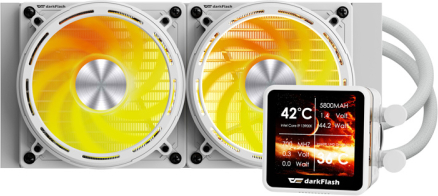Explore DE240 is a water cooler that is designed for high performance and striking appearance. The 2.88-inch magnetic IPS screen used displays system data in real time, and the ability to detach it and attach it to any metal surface of the case gives great freedom in interior design. The kit is equipped with two 120-millimeter PWM fans with ARGB illumination, which provide solid cooling even for powerful processors with TDPs of up to 315 watts.