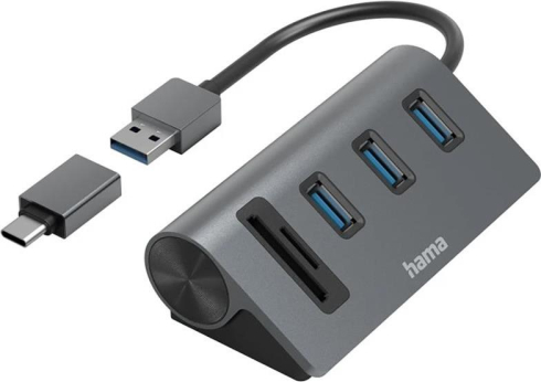 Hama USB Hub, 3x USB-A 3.2 Gen 1, SD, microSD, USB-C Adapter, black/gray - USB hub