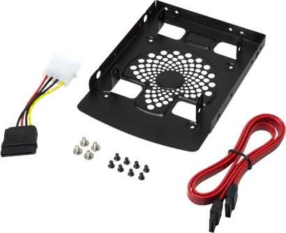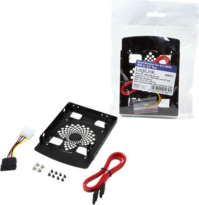 To mount 2.5" HDD/SSD in 3.5" slot/enclousure Mounting Frame for up to 2 HDD/SSD Solid mounting 12x assembly screws within package contents Material: Aluminum Size: 100x137x20 mm Incl. SATA cable and SATA power adapter