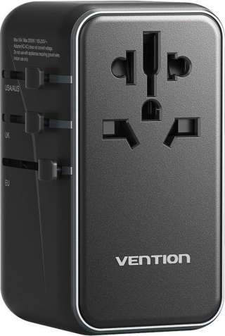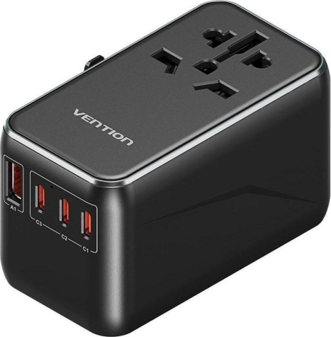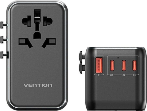 Uniwersalny adapter podróżny z ładowarką Vention 100W GaN 1x USB-A 3x USB-C czarny