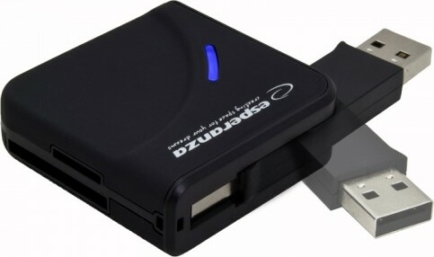 | Description Universal and very light external card reader. Easy to transport, looks like a small rectangle. USB connector hidden in the adapter. Housing coated with a nice to touch rubbet coating. New generation of mainframe supports SDXC cards. Huge amount of supported formats. Allows transferring data to computers. Supports most of the popular memory cards. Does not require drivers. |