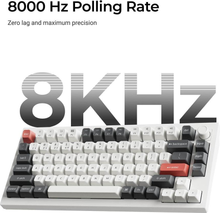 Summary Keychron Q1 Ultra 8K. Keyboard form factor: 75%. Keyboard style: Straight. Connectivity technology: Wired & Wireless, Device interface: USB + RF Wireless + Bluetooth, Keyboard key switch: Mechanical. Backlight type: RGB LED. Recommended usage: Gaming. Product colour: Black