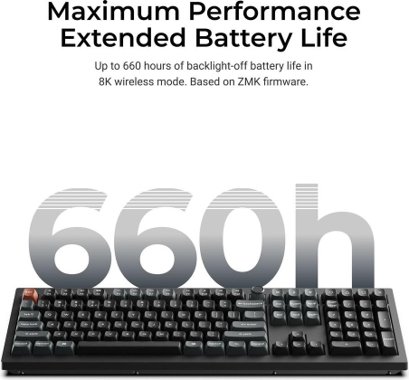 Keychron V6 Ultra 8K Meet the Keychron V6 Ultra 8K, a next-generation 100% full-size wireless custom mechanical keyboard engineered for unparalleled performance. It supports 2.4 GHz wireless, Bluetooth 5.3, and wired connections. Powered by ZMK firmware, it enables an 8K polling rate in wireless mode while delivering up to 660 hours of battery life. Enhanced with multiple layers of acoustic foam and Keychron Launcher, it offers a refined typing experience with premium sound and complete customization.