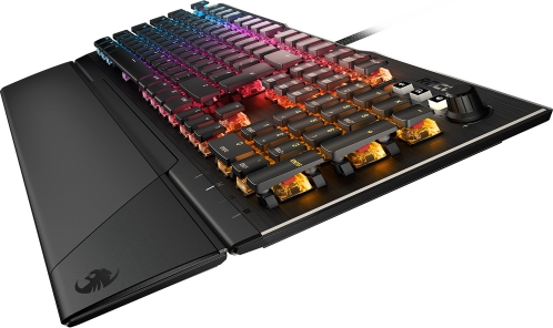 Taktila priekšrocība ROCCAT Vulcan mehāniskā datorspēļu klaviatūra piedāvā jaudīgu kombināciju, ko veido tehnoloģiska inovācija, izturība un apgaismojums. Tā ir pirmā ROCCAT klaviatūra ar pašā uzņēmumā izstrādātiem Titan Switch slēdžiem. Šie pilnībā no jauna konstruētie slēdži ir radīti geimeriem, kuri meklē ātru un precīzu, bet tai pat laikā taktilu taustiņspiedienu. Rūdīta metāla plāksne piedod klaviatūrai stiprību un aizsargā to pret triecienu un kritienu ietekmi, savukārt taustiņiem ir uzlabota noturība pret putekļiem. Jaudīgā AIMO apgaismojuma sistēma ir iedzīvināta ar ilga darbmūža LED diodēm un caurspīdīgu slēdža korpusu, kas vienmērīgi sadala gaismu. Šī dzīvā apgaismojuma sistēma ir pielāgojama katram taustiņam atsevišķi kādā no 16,8 milj. spilgto krāsu vai ikoniskajā ROCCAT zilajā krāsā. Vulcan klaviatūra ir izstrādāta kaislīgi sekojot atzītajiem vācu dizaina un inženierijas principiem. Tas ir precīzs geiminga instruments, kas ļauj sajust jaudu no pirmā skatiena un pirmā taustiņspiediena. Revolucionārie Titan Switch slēdži Titan Switch slēdzis vienādās daļās apvieno sevī mehāniku un aparātprogrammatūru. No mehānikas puses tas ir aprīkots ar daudziem dizaina uzlabojumiem, piešķirot katram taustiņspiedienam uzticamību un konsekvenci. Speciāls korpuss pastiprina slēdža struktūru, mazinot tā ļodzīšanos un padarot katru spiedienu daudz stabilāku un stingrāku. Turklāt korpuss ir caurspīdīgs, kas pastiprina AIMO apgaismojuma efektu. Cits svarīgs uzlabojums attiecas uz slēdža kontaktu. Aktivizējot slēdzi, pilnveidotā mehānika ģenerē tīrāku signālu ar ievērojami mazāku drebēšanu elektriskā kontakta laikā. Tā kā kontakts stabilizējas ātrāk, ātrāk tiek arī nolasīts taustiņspiediens. Šāda inovācija ļauj pārveidotajai aparātprogrammatūrai uzticami nolasīt Vulcan taustiņspiedienus daudz agrākā punktā pēc aktivizācijas — ievērojami ātrāk, nekā to iespēj konkurējošās klaviatūras. Titan Switch Tactile slēdža aktivizācijas punkts ir 1,8 mm un kopējais taustiņa gājiens 3,6 mm. Tas ir par 20% ātrāks nekā standarta slēdzis, turklāt kluss, taču ar sajūtamu atduri. Titan Switch Speed slēdža aktivizācijas punkts ir 1,4 mm un kopējais taustiņa gājiens 3,6 mm. Šis ir Roccat ātrākais slēdzis — par 30% ātrāks nekā standarta slēdzis. Radīta, lai kalpotu Anodēta alumīnija plāksne pastiprina Vulcan klaviatūras struktūru un aizsargā pret nodilumu. Noņemams delnu balsts un zema profila dizains ievērojami uzlabo ergonomiku, padarot klaviatūru piemērotu ilgstošām spēļu sesijām. Taustiņu vāciņi ir īpaši izstrādāti, paturot prātā ērtu kopšanu. To atstarpes un virsmas laukums ir tieši tāds pats kā tradicionālajiem taustiņu vāciņiem, tomēr tie ir īsāki, atvieglojot tīrīšanu un ideāli papildinot Titan Switch slēdža putekļu izturīgo korpusu. AIMO apgaismojums Vulcan klaviatūra nodrošina vislabāko iespējamo platformu AIMO apgaismojuma sistēmai. Katrs slēdzis ir aprīkots ar individuāli konfigurējamu, ilga darbmūža LED diodi, kas spēj atainot 16,8 milj. krāsu toņu un dažādus specefektus. Caurspīdīgais slēdža korpuss padara daudzkrāsu apgaismojumu iespaidīgu un vienmērīgi sadala to no katra taustiņa. AIMO sevī vienlaikus apvieno gan apgaismojuma, gan eko sistēmu, kuras funkcionalitāte pieaug atbilstoši pievienoto AIMO iespējoto ierīču skaitam. Tā organiski reaģē uz jūsu lietošanas paradumiem un piedāvā progresīvus apgaismojuma scenārijus bez nepieciešamības tos iestatīt manuāli. Vulcan 121 AIMO Pilnībā funkcionālā klaviatūra Vulcan 121 AIMO ietver sevī noņemamu ergonomisku delnu balstu pielāgojamam komfortam un nodrošina ērtu, operatīvu vadību, pateicoties multimediju ritenītim. Individuāli konfigurējamais taustiņu apgaismojums, ko darbina AIMO apgaismojuma sistēma, piedāvā nepārspētus apgaismojuma scenārijus, savukārt anodēta alumīnija augšējā plāksne pasargā klaviatūru no bojājumiem.