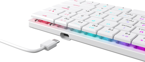 | Kompaktā, bet jaudīgā spēļu tastatūra White Shark NAGAMAKI apvieno elegantu zema profila mehānisko dizainu ar pilnu anti-ghosting, lai nodrošinātu precīzu spēli. Ar varavīksnes apgaismojumu un 19 efektiem tā piešķir jūsu iestatījumam eleganci. Viegla un izturīga, ar vairāk nekā 50 miljoniem taustiņu nospiešanu, tā ir paredzēta spēlētājiem, kuri atrodas ceļā. |