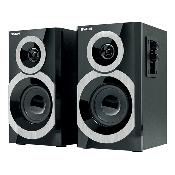 SVEN Company presented SPS-619 speaker system in an unusual color solution – in gold, continuing by that the series of models with the unique design. Black glossy surface and light golden ornamental elements on front panels in combination with each other look very daintily and stylishly. Being casted associations with precious exhibits and masterpieces on exhibitions, the model can rightfully claim to be a “interior ornamentation” status. SVEN SPS-619 is the embodiment of the most necessaries to sound movies, computer games and listening to music tracks on PC. Its compact dimensions allow placing speakers on the worktable next to the monitor without any inconvenience for the user. A separate tweeter reproduces all tinges of the vocal, stringed instruments and percussion very distinctly, at that the tone control allows correcting the saturation of high-frequencies making the sound more explicit. It is noteworthy that cabinets of speakers are wooden (MDF). This allows suppressing different sound distortions related to physical laws of sound-wave propagation in the closed space. As the result, the sound becomes purer and more natural. The control panel is located on the side wall of an active speaker for the sake of convenience. It has the volume control of the system, as well as the treble control. Taking into consideration the computer orientation of the speaker system, there is the headphones jack on the panel conveniently. As a result, SVEN SPS-619 GOLD is an affordable functional upgrade for your PC with the design inviting to the eye and the convenient set of control options. |