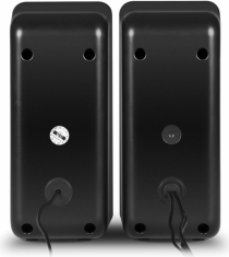 USB-powered (via PC/laptop USB port or 5V DC power supply)Volume controlPower LEDBluetooth wireless signal transmission protocolHeadphone jackPlastic speaker cabinets