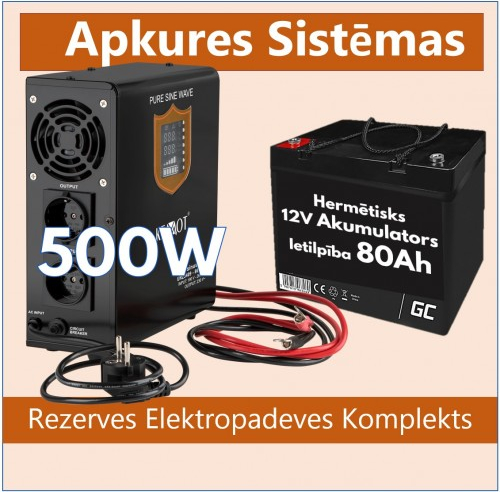 Rezerves Elektropadeves Komplekts Apkures Sistēmai 500W + 12V 50Ah akumulators